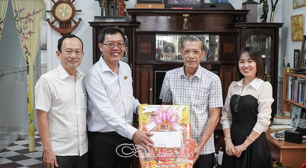 Đoàn trao quà, gửi lời chúc mừng năm mới đến Nhà báo Hồng Quốc Việt, nguyên Phó Giám đốc Đài PTTH Cà Mau.