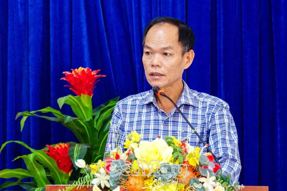 Ông Trần Hoàng Em, Trưởng phòng Quản lý Thương mại, Sở Công thương Cà Mau, báo cáo kết quả triển khai thực hiện công tác bảo vệ quyền lợi ngưới tiêu dùng năm 2025.