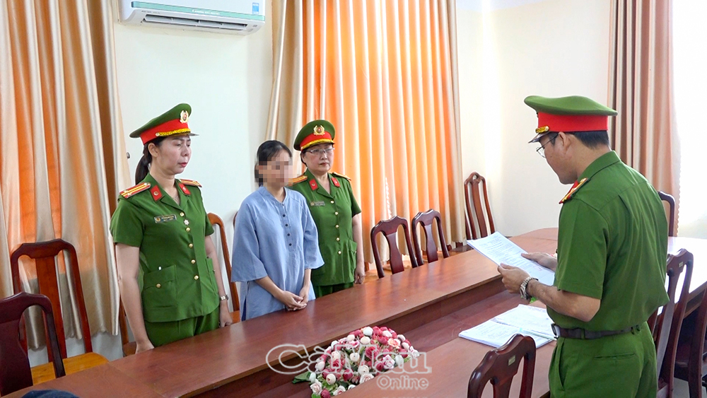 Cơ quan Cảnh sát điều tra Công an tỉnh Cà Mau thi hành lệnh bắt tạm giam bị can Nguyễn Thị Hồng Đào.
