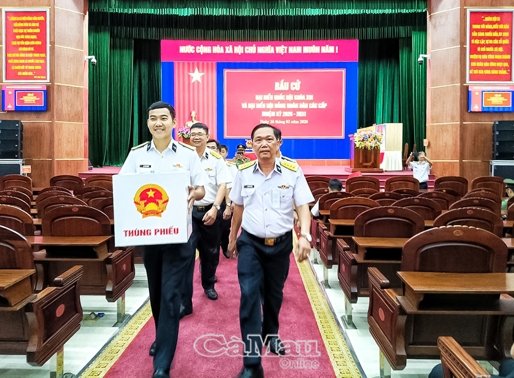 Tại bến, các cử tri là cán bộ, chiến sĩ thuộc các tàu xuất bến trước ngày 15/3/2026 đã thực hiện bỏ phiếu sớm, bảo đảm quyền và nghĩa vụ công dân. Ngay sau lễ khai mạc, hai tàu rời bến, thực hiện nhiệm vụ đưa thùng phiếu đến hơn 400 cử tri đang làm nhiệm vụ tại các nhà giàn DK1, tàu trực chiến, lực lượng Hải đoàn 128, 129 và ngư dân bám biển.