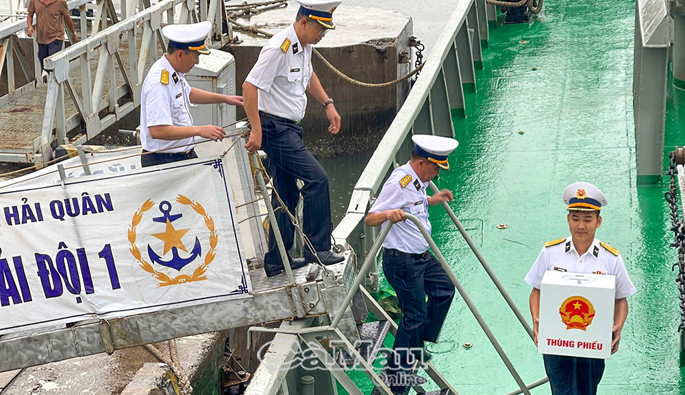 Cán bộ Vùng 2 Hải quân mang thùng phiếu đến để bảo đảm quyền công dân cho hơn 400 cử tri đang làm nhiệm vụ tại các Nhà giàn DK1, các tàu trực chiến, lực lượng thuộc Hải đoàn 128, 129 và đông đảo ngư dân đang vươn khơi bám biển tại vùng biển phía Nam của Tổ quốc.