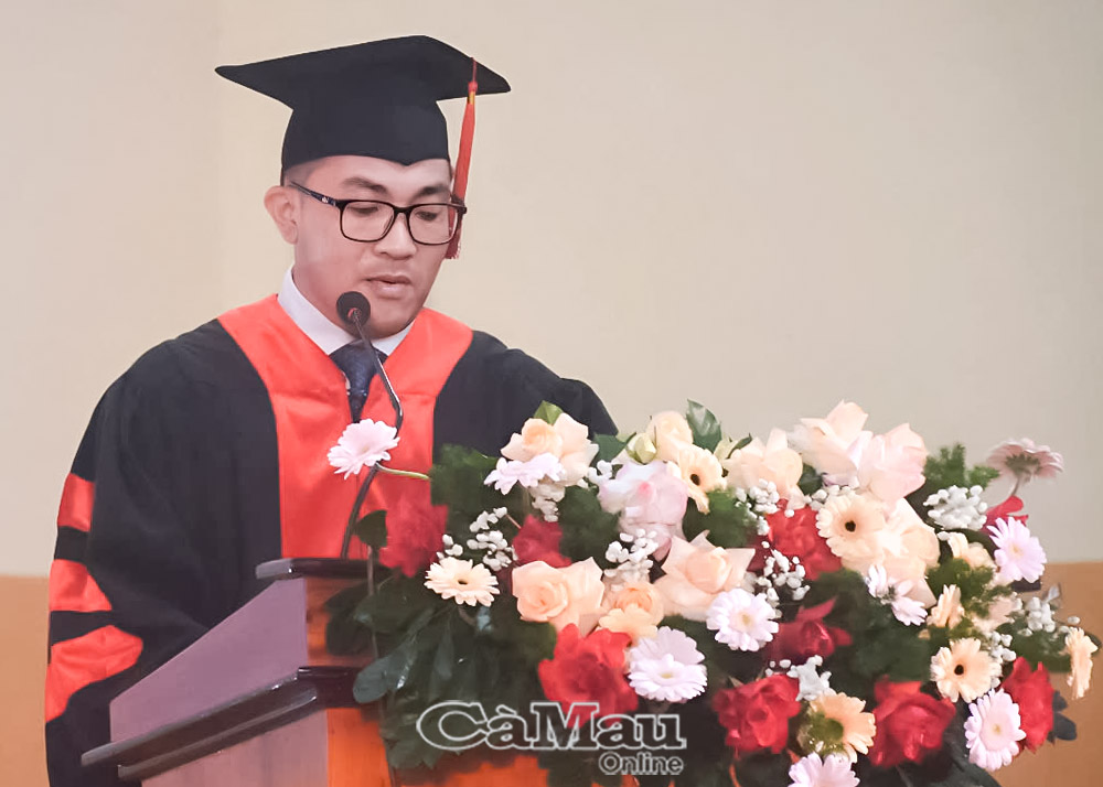 Tiến sĩ Trịnh Huỳnh An, Phó Hiệu trưởng Trường Đại học Bình Dương, GGiasm đốc Phân hiệu BDU Cà Mau, mong muốn mỗi tân cử nhân luôn phát huy tinh thần học nữa, học mãi, học suốt đời theo triết lý giáo dục "Học - Hỏi - Hiểu - Hành".