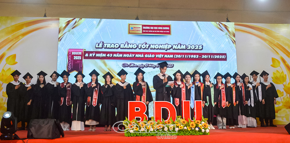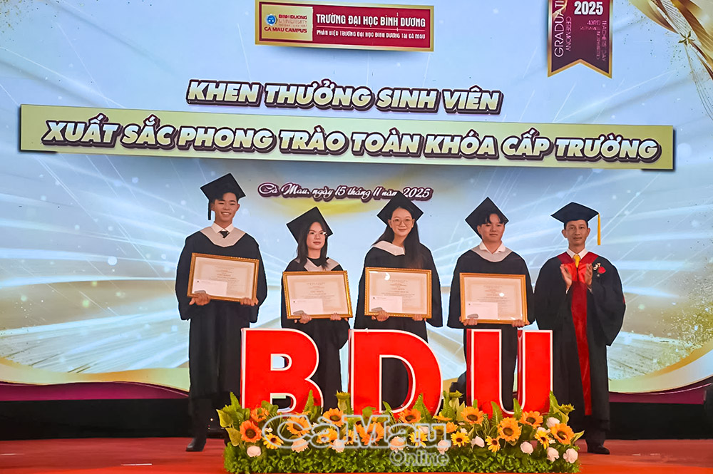 Ngày 15/11, Trường Đại học Bình Dương - Phân hiệu Cà Mau (BDU Cà Mau) tổ chức Lễ vinh danh và trao bằng tốt nghiệp năm 2025 cho các tân thạc sĩ, tân cử nhân, tân dược sĩ; đồng thời kỷ niệm 43 năm Ngày Nhà giáo Việt Nam 20/11.