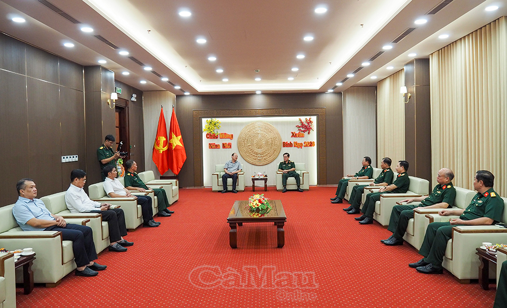 Nhân dịp chuẩn bị đón Tết Nguyên đán Bính Ngọ 2026, ngày 29/1, Đoàn công tác Tỉnh uỷ Cà Mau do đồng chí Nguyễn Hồ Hải, Uỷ viên Ban Chấp hành Trung ương Đảng, Bí thư Tỉnh uỷ Cà Mau, làm Trưởng đoàn đến thăm, chúc Tết Bộ Tư lệnh Quân khu 9. Cùng đi có đồng chí Ngô Vũ Thăng, Phó Chủ tịch UBND tỉnh và đại diện lãnh đạo các sở, ban, ngành tỉnh.