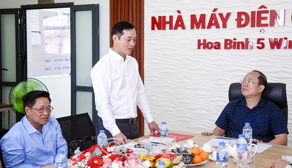 Báo cáo với Đoàn công tác về quá trình đầu tư, xây dựng và vận hành Nhà máy điện gió Hòa Bình 5 (giai đoạn 1), đại diện công ty cho biết, dự án được triển khai, hoàn thành và vận hành đúng tiến độ. Với quy mô 26 tuabin, từ tháng 11/2021 đến tháng 10/2025, dự án đã sản xuất lũy kế hơn 827 triệu kWh, doanh thu đạt trên 1.670 tỷ đồng.