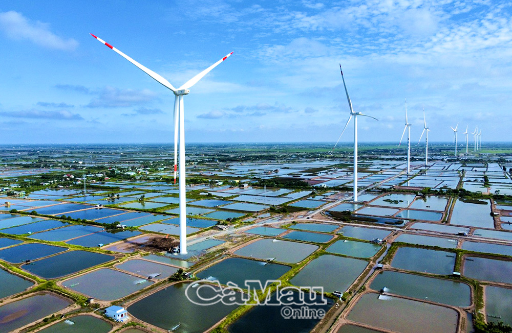 Toàn cảnh công trình Điện gió Hòa Bình 5, xã Vĩnh Hậu, tỉnh Cà Mau.