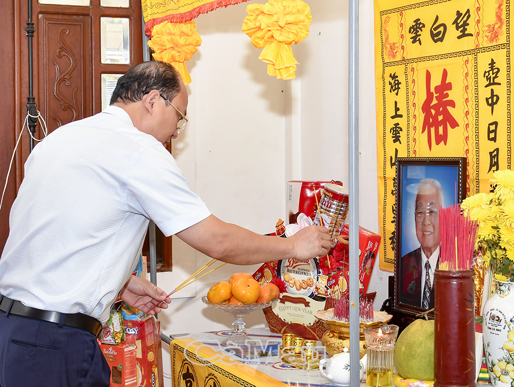 Bí thư Tỉnh uỷ Nguyễn Hồ Hải thắp hương tưởng nhớ đồng chí Võ Thanh Bình, nguyên Uỷ viên Ban Chấp hành Trung ương Đảng, nguyên Bí thư Tỉnh uỷ Cà Mau và thăm hỏi, chúc Tết gia đình đồng chí (ngụ phường An Xuyên).
