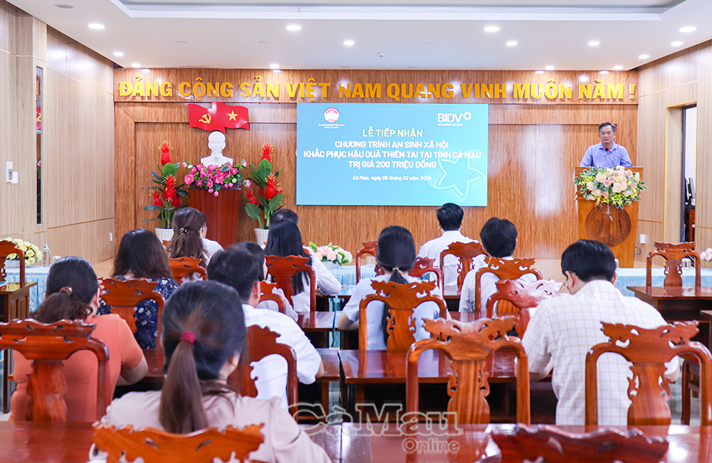 Báo Cà Mau Sáng 5/2, Uỷ ban MTTQ Việt Nam tỉnh Cà Mau tổ chức lễ tiếp nhận kinh phí tài trợ an sinh xã hội với số tiền 200 triệu đồng do Ngân hàng Thương mại Cổ phần Đầu tư và Phát triển Việt Nam (BIDV) Chi nhánh Cà Mau trao tặng, nhằm hỗ trợ người dân trên địa bàn tỉnh bị ảnh hưởng bởi thiên tai.