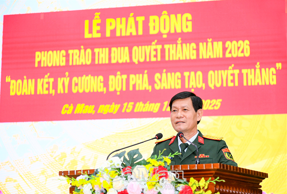 Sáng 15/12, Bộ Chỉ huy Quân sự (CHQS) tỉnh Cà Mau tổ chức Lễ phát động phong trào thi đua Quyết thắng năm 2026 trong lực lượng vũ trang (LLVT) tỉnh. Dự lễ có Đại tá Lê Quang Luật, Phó Chính uỷ Bộ CHQS tỉnh.