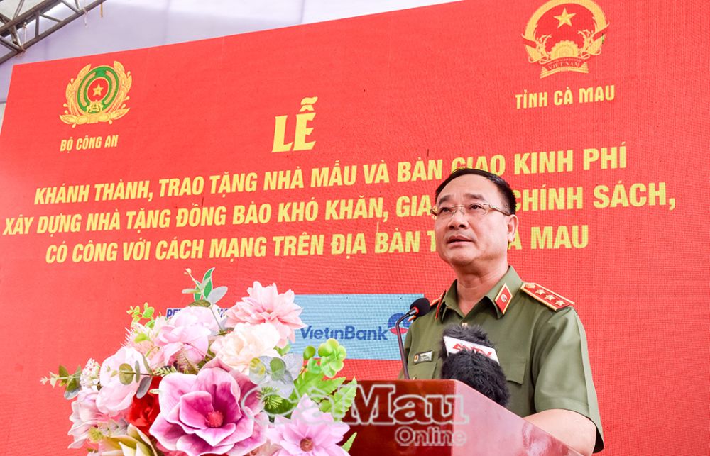 Thượng tướng Phạm Thế Tùng, Uỷ viên Ban Chấp hành Trung ương Đảng, Thứ trưởng Bộ Công an, nhấn mạnh: Mỗi mái ấm được hoàn thành là minh chứng sinh động cho sự quan tâm của Đảng, Nhà nước, Bộ Công an đối với đồng bào vùng địa đầu cực Nam Tổ quốc.