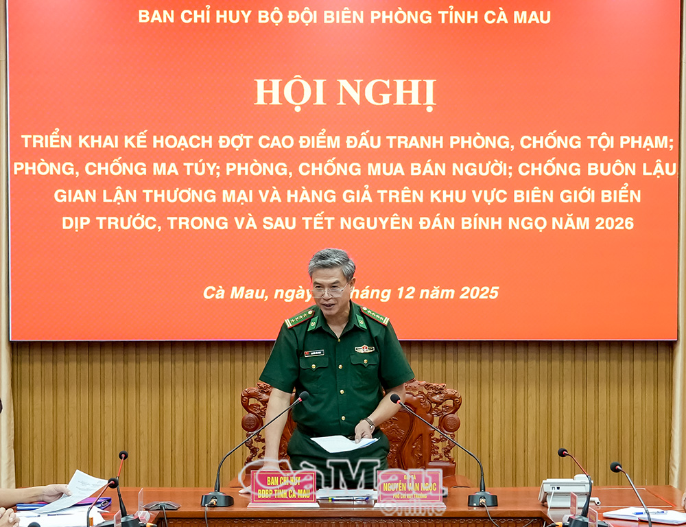 Báo Cà Mau Chiều 2/12, Ban Chỉ huy Bộ đội Biên phòng (BĐBP) tỉnh Cà Mau phát động đợt thi đua cao điểm đấu tranh phòng, chống tội phạm; phòng chống ma tuý; mua bán người; buôn lậu, gian lận thương mại và hàng giả trên khu vực biên giới biển dịp trước, trong và sau Tết Nguyên đán Bính Ngọ 2026.