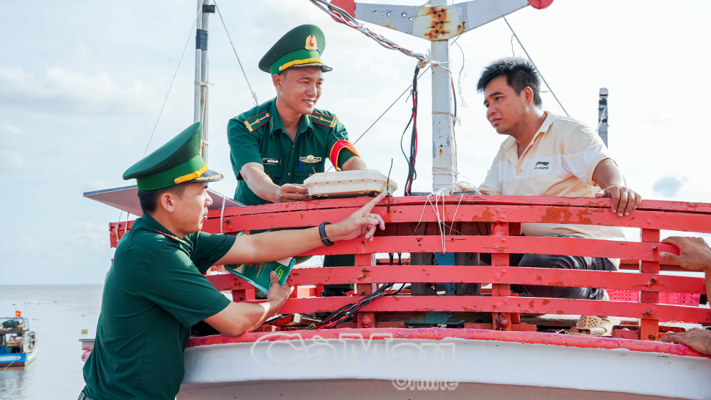 Trên chiếc tàu thu mua hải sản do anh Trần Văn Ðen (Ấp 1, xã Gành Hào) làm thuyền trưởng, bộ đội biên phòng phát tờ rơi, hướng dẫn cụ thể những nội dung cần lưu ý trong quá trình vươn khơi. Không chỉ cung cấp tài liệu tuyên truyền, lực lượng còn tận tình giải thích các quy định về lắp đặt thiết bị giám sát hành trình, duy trì tín hiệu 24/24 khi hoạt động trên biển; đồng thời, phổ biến những hành vi bị nghiêm cấm như: khai thác sai vùng, sử dụng xung điện, chất nổ hay vượt ranh giới vùng biển cho phép.