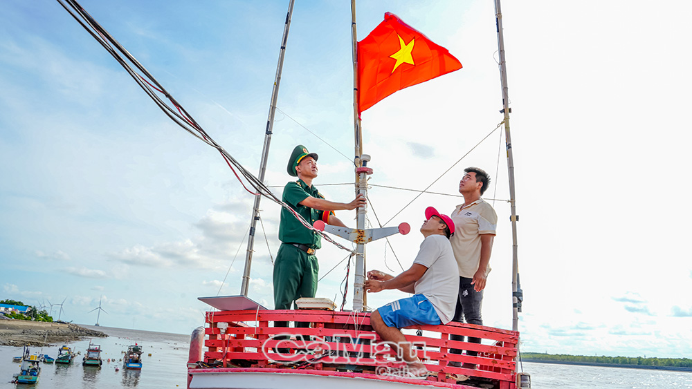 Ngư dân Gành Hào treo cờ Tổ quốc trước khi ra khơi, thể hiện tinh thần yêu nước và chấp hành nghiêm quy định trong khai thác hải sản.