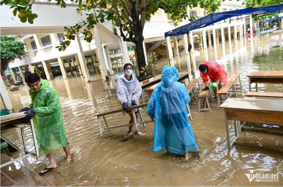 Bộ cũng đề nghị huy động lực lượng công an, quân đội, dân quân tự vệ, các đoàn thể và người dân tham gia dọn dẹp trường lớp ngay khi nước rút.