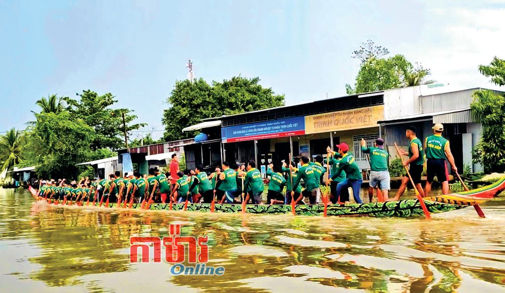 ក្រុមកីឡាទូក.ងវត្តជ្រុងខ្មែរ (Rạch Giồng) ឃុំ Hồ Thị Kỷ ហាត់អុំលើរន្ទា។