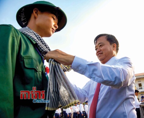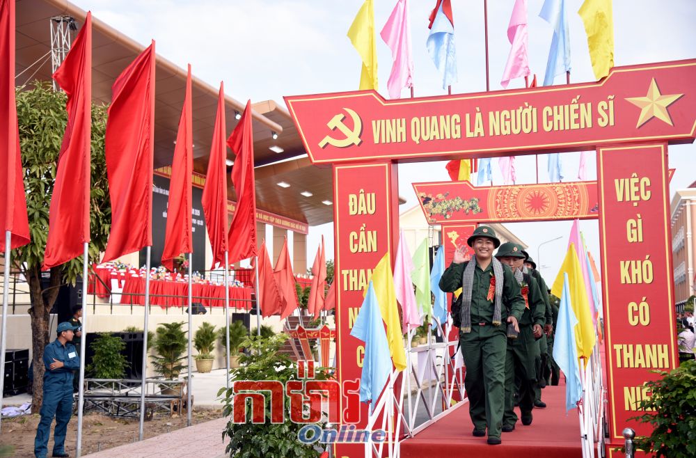 យុវជនឆ្លងកាត់ខ្លោងទ្វារកិត្តិយស ដើម្បីចេញទៅបម្រើជាតិ មាតុភូមិ។