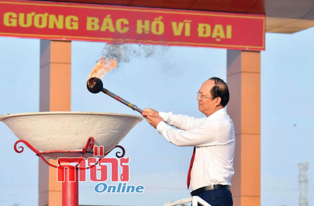 លេខាបក្សេខេត្ត Nguyễn Hồ Hải អុជប្រទីបប្រពៃណីនៅពិធីប្រគល់ និងទទួលយកទ័ព។