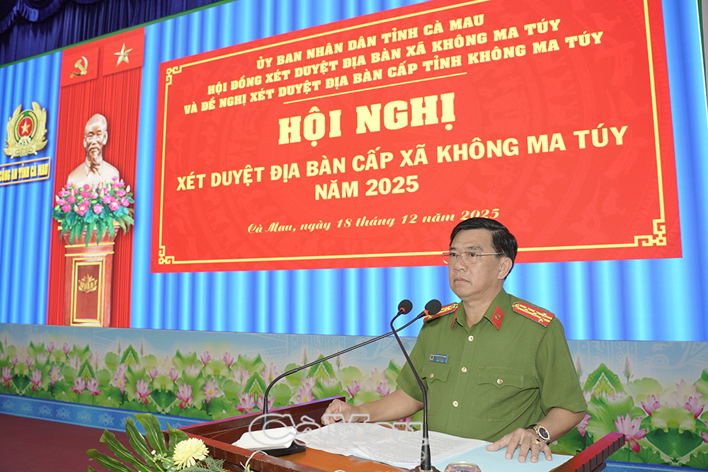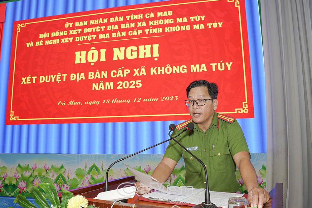 Báo Cà Mau Ngày 18/12, UBND tỉnh Cà Mau tổ chức hội nghị xét duyệt địa bàn cấp xã không ma tuý năm 2025. Hội nghị nhằm đánh giá kết quả triển khai các tiêu chí xây dựng địa bàn không ma tuý, góp phần bảo đảm an ninh, trật tự và phục vụ phát triển kinh tế - xã hội của địa phương.