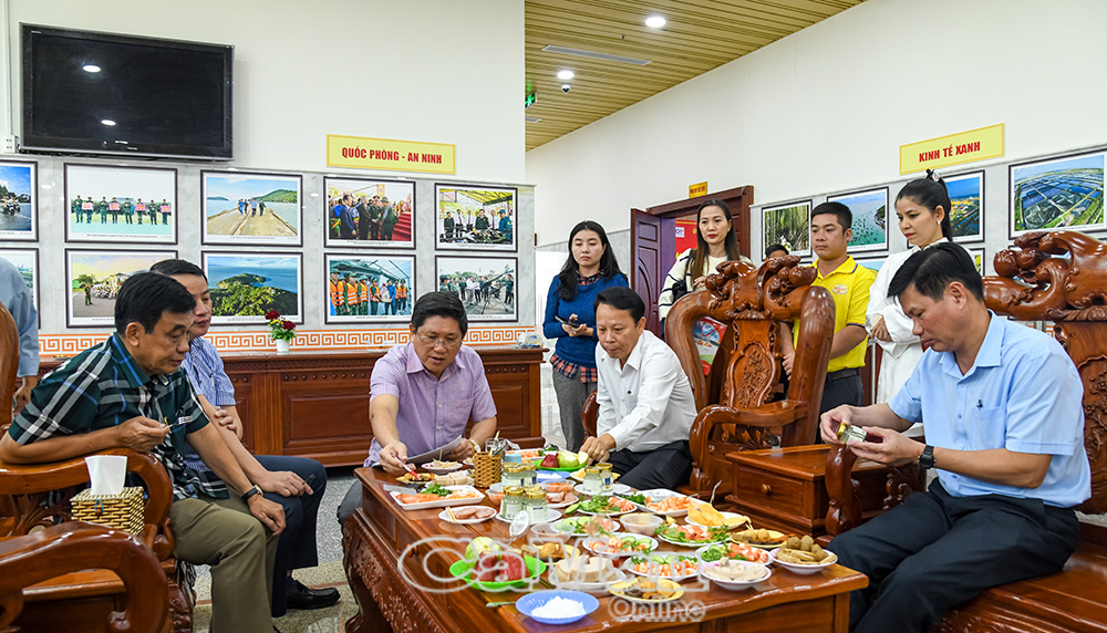 Phó Chủ tịch UBND tỉnh Lê Văn Sử và các thành viên Hội đồng tiến hành chấm điểm, đánh giá sản phẩm.