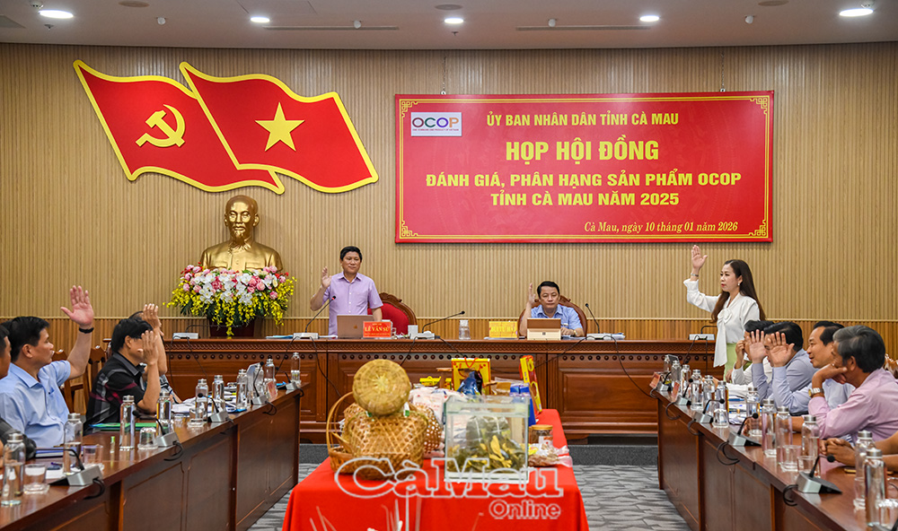 Báo Cà Mau Trong cuộc họp chiều 10/1, Hội đồng đánh giá, phân hạng sản phẩm OCOP tỉnh Cà Mau năm 2025 (Hội đồng) thống nhất công nhận 32 sản phẩm, nâng tổng số sản phẩm OCOP toàn tỉnh lên 333 sản phẩm.