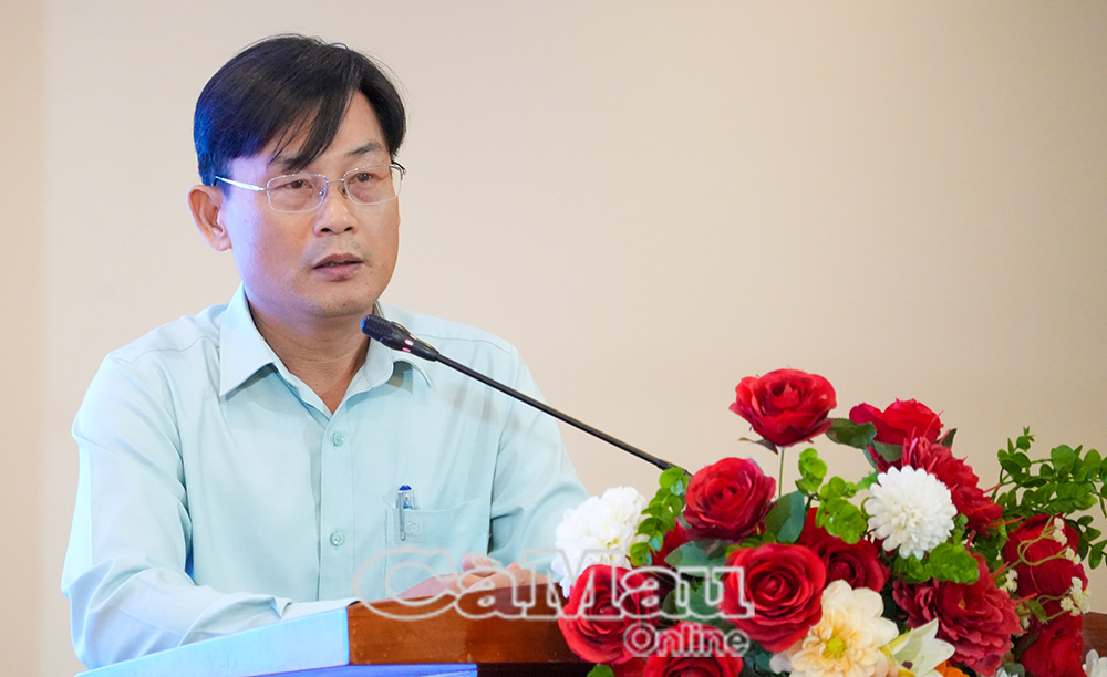 Nhà báo Nguyễn Quốc Danh, Phó Giám đốc Báo và phát thanh, truyền hình Cà Mau,  phát biểu trao đổi kinh nghiệm trong công tác phối hợp tuyên truyền.