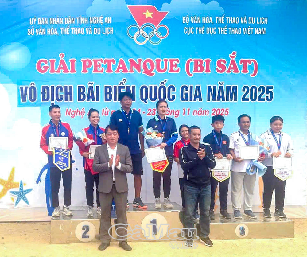 Báo Cà Mau Giải Pentanque (bi sắt) Vô địch bãi biển quốc gia năm 2025 khai mạc ngày 14/11 tại bãi biển phường Cửa Lò, tỉnh Nghệ An. Giải do Cục Thể dục Thể thao phối hợp với Sở Văn hóa, Thể thao và Du lịch Nghệ An tổ chức.