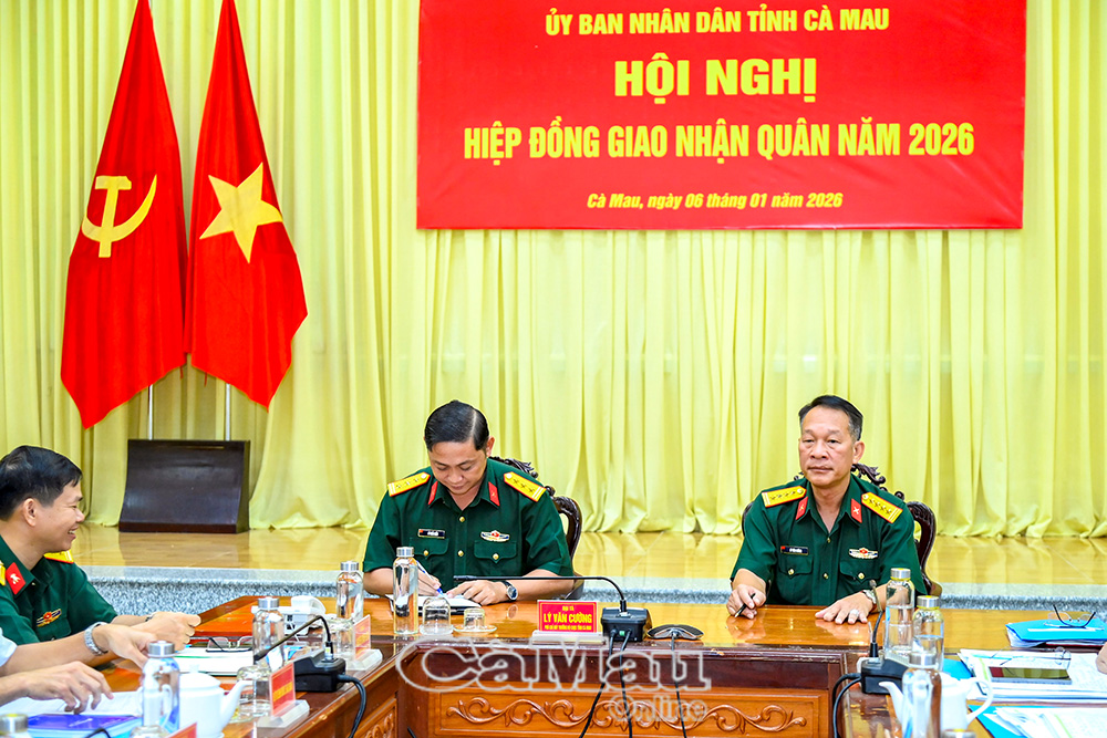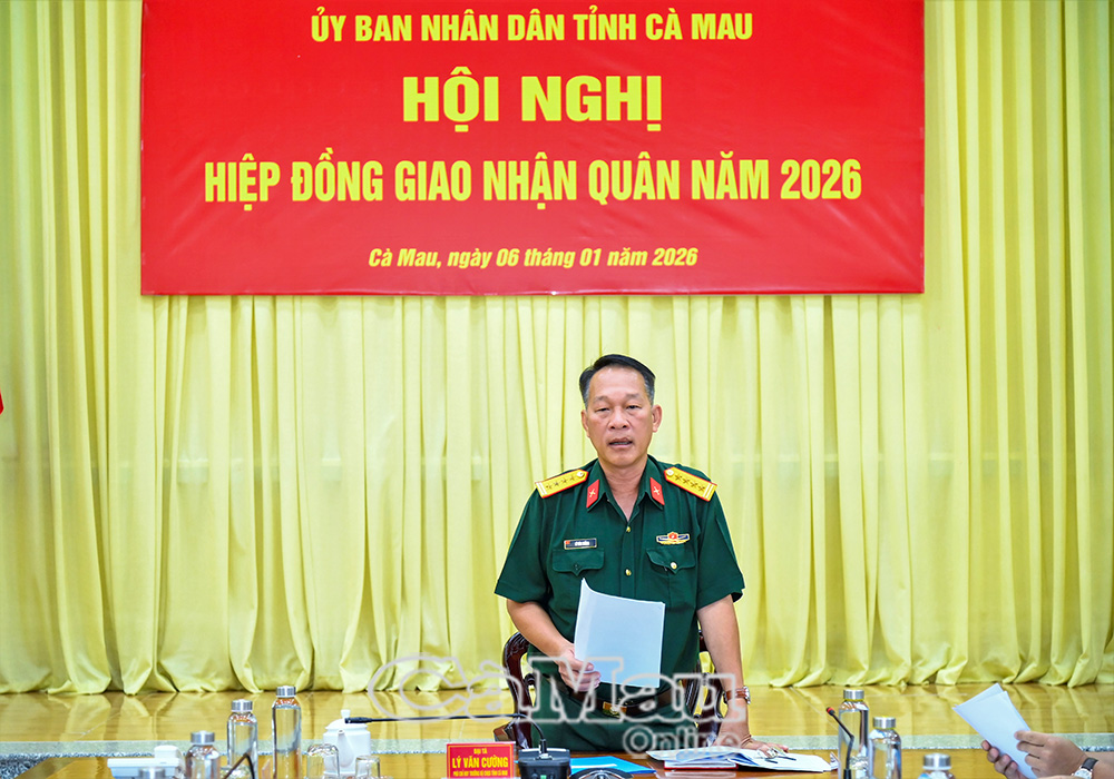 Chiều 6/1, UBND tỉnh Cà Mau tổ chức Hội nghị hiệp đồng giao nhận quân năm 2026. Đại tá Lý Văn Cường, Phó Chỉ huy trưởng Bộ Chỉ huy Quân sự tỉnh, thừa uỷ quyền của UBND tỉnh dự và chủ trì hội nghị.