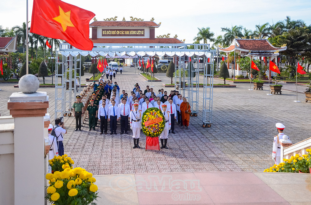 Trước buổi họp mặt, các đồng chí lãnh đạo tỉnh và đại biểu dâng hương, dâng hoa Chủ tịch Hồ Chí Minh tại Khu tưởng niệm; dâng hương, dâng hoa tại Đền thờ 10 Anh hùng liệt sĩ Khởi nghĩa Hòn Khoai và Nghĩa trang Liệt sĩ tỉnh (phường An Xuyên), bày tỏ lòng thành kính, tri ân sâu sắc công lao to lớn của Chủ tịch Hồ Chí Minh và các anh hùng liệt sĩ cho sự nghiệp đấu tranh giải phóng dân tộc, bảo vệ Tổ quốc.