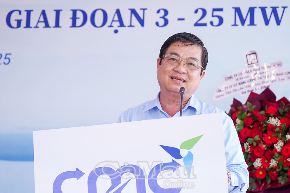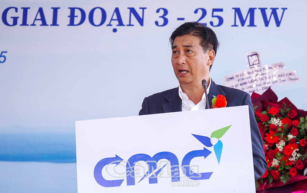 Phát biểu tại buổi lễ, ông Vũ Hùng Hải, Giám đốc Công ty CMC, nhấn mạnh: “CMC xác định dự án Tân Thuận - giai đoạn 3 không chỉ là một công trình kinh tế mà còn mang ý nghĩa xã hội và môi trường sâu sắc. Chúng tôi cam kết triển khai dự án đúng quy định pháp luật, đảm bảo chất lượng - tiến độ - an toàn, đồng thời thực hiện đầy đủ nghĩa vụ với Nhà nước và trách nhiệm với cộng đồng địa phương. CMC mong muốn dự án sẽ trở thành biểu tượng năng lượng sạch của Cà Mau, góp phần khẳng định vai trò của Việt Nam trong tiến trình chuyển dịch năng lượng toàn cầu”.