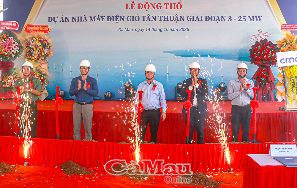 Báo Cà Mau Ngày 14/10, tại ấp Lưu Hoa Thanh, xã Tân Thuận, Công ty Cổ phần Đầu tư Năng lượng tái tạo Cà Mau (CMC) tổ chức Lễ động thổ Dự án Nhà máy Điện gió Tân Thuận - giai đoạn 3. Đây là công trình có ý nghĩa quan trọng, đánh dấu bước tiến mới của tỉnh Cà Mau trong chiến lược phát triển năng lượng tái tạo, gắn với mục tiêu tăng trưởng xanh và phát triển bền vững.