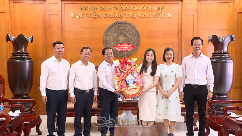 Phó Chủ tịch Thường trực Uỷ ban MTTQ Việt Nam tỉnh Cà Mau Lê Thanh Triều gửi lời chúc mừng năm mới đến Đảng uỷ, Ban Giám đốc và toàn thể cán bộ, giảng viên Học viện Chính trị khu vực II.
