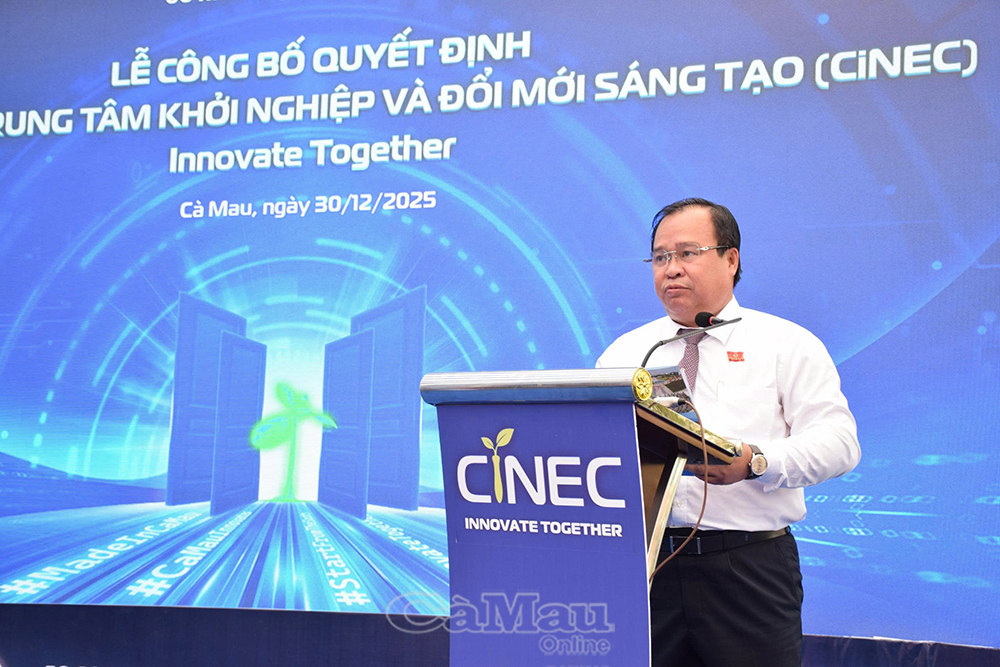 Sáng 30/12, UBND tỉnh Cà Mau tổ chức Lễ công bố Quyết định thành lập Trung tâm Khởi nghiệp và Đổi mới sáng tạo tỉnh Cà Mau (CiNEC), trực thuộc Sở Khoa học và Công nghệ.
