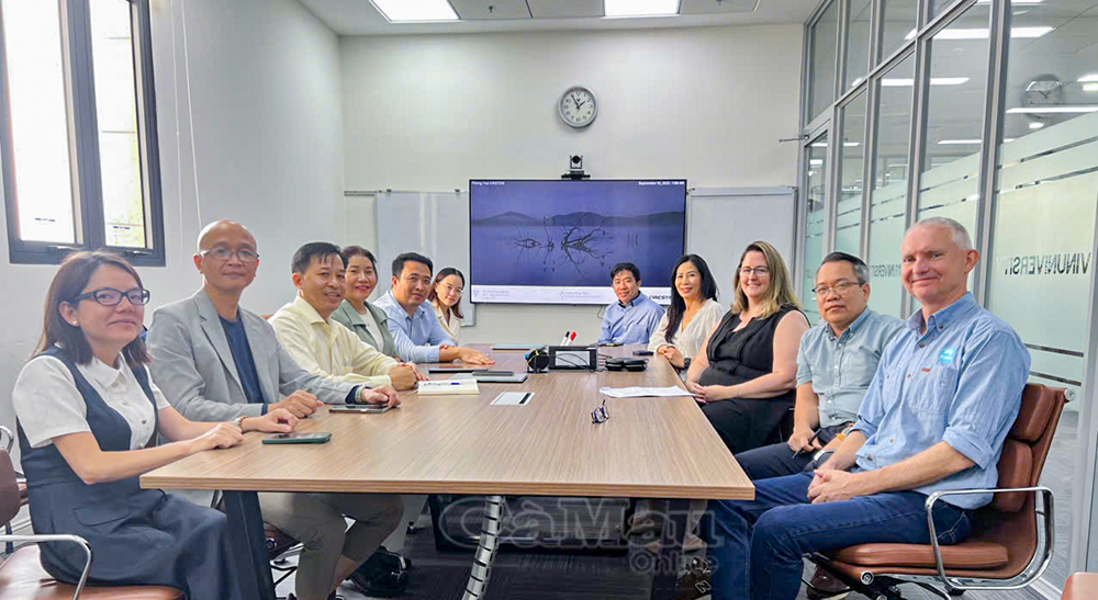 Đại diện lãnh đạo Sở KH&CN Cà Mau, Trường Đại học VinUni, CSIRO và Trường Đại học Queensland (UQ) tại buổi làm việc.