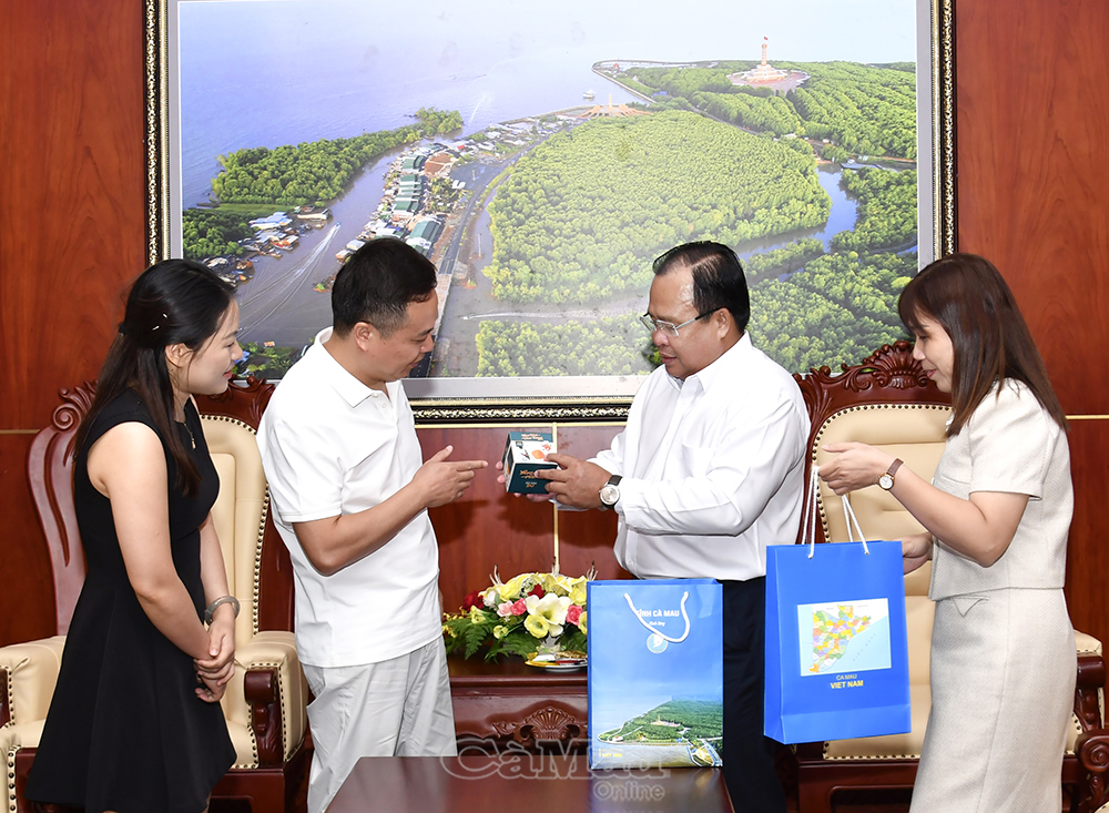 Dịp này, Phó Chủ tịch UBND tỉnh Nguyễn Minh Luân tặng quà lưu niệm, đồng thời giới thiệu các sản phẩm đặc trưng của tỉnh Cà Mau với đại diện Tập đoàn Xây dựng Thái Bình Dương.
