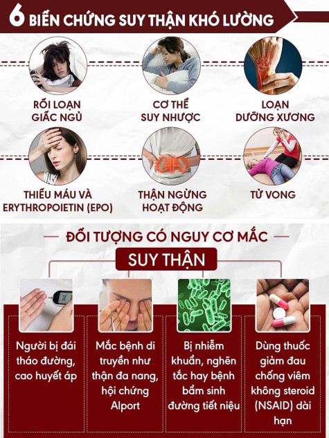 Tình trạng thận mất khả năng hoạt động có thể ảnh hưởng rất nhiều đến chất lượng cuộc sống của một người, bao gồm: Những vấn đề sức khỏe liên quan đến tim mạch, xương khớp, thần kinh… Mất khẩu vị, suy dinh dưỡng, khó ngủ, trầm cảm.
