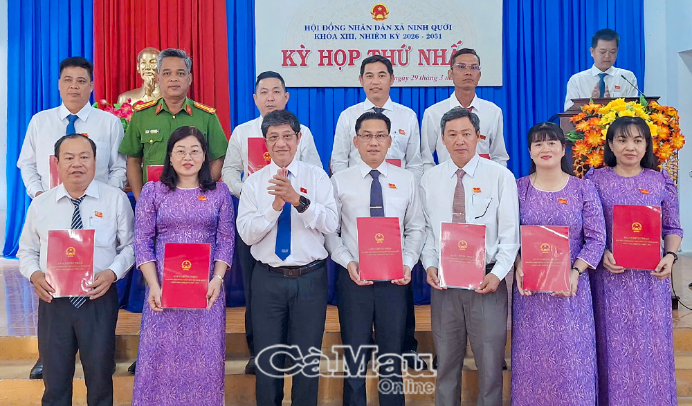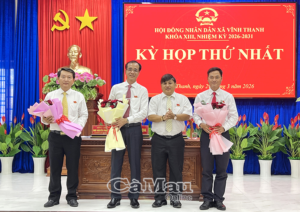 Báo Cà Mau Sáng 29/3, HĐND các xã: Ninh Quới, Tân Thuận, Vĩnh Lợi và Vĩnh Thanh khoá mới tiến hành kỳ họp thứ nhất, bầu các chức danh chủ chốt HĐND và UBND xã, nhằm kiện toàn bộ máy, tạo nền tảng cho chính quyền địa phương hoạt động hiệu quả trong nhiệm kỳ 2026-2031.