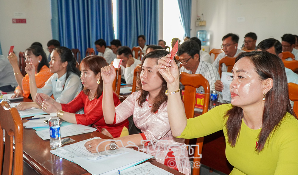 Các đại biểu HĐND xã Tân Thuận biểu quyết thông qua các nội dung quan trọng tại kỳ họp thứ nhất.