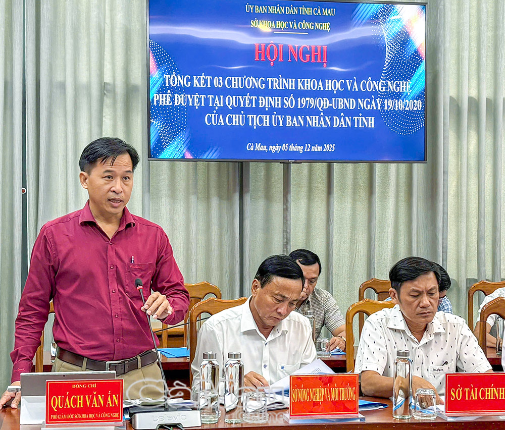 Sáng 5/12, Sở Khoa học và Công nghệ tỉnh Cà Mau tổ chức Hội nghị tổng kết 3 chương trình khoa học và công nghệ (KH&CN) giai đoạn 2021-2025, được Chủ tịch UBND tỉnh phê duyệt tại Quyết định số 1979/QĐ-UBND ngày 19/10/2020.