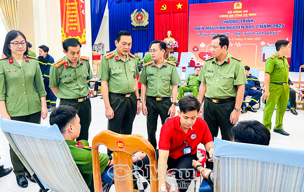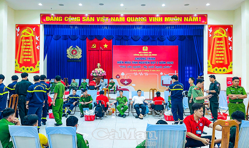 Báo Cà Mau Tiếp tục lan toả thông điệp “Máu cứu người - Nụ cười hạnh phúc”, ngày 27/11, Công an tỉnh Cà Mau phối hợp Bệnh viện Huyết học - Truyền máu TP Cần Thơ tổ chức chương trình hiến máu tình nguyện đợt 2 năm 2025.
