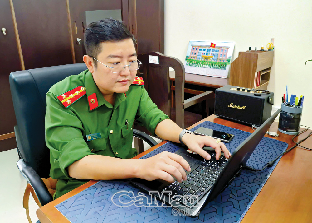 Ðại uý Trương Việt Thắng, Phó Trưởng Công an xã Phước Long, dành nhiều tâm huyết cho trang Fanpage của đơn vị.