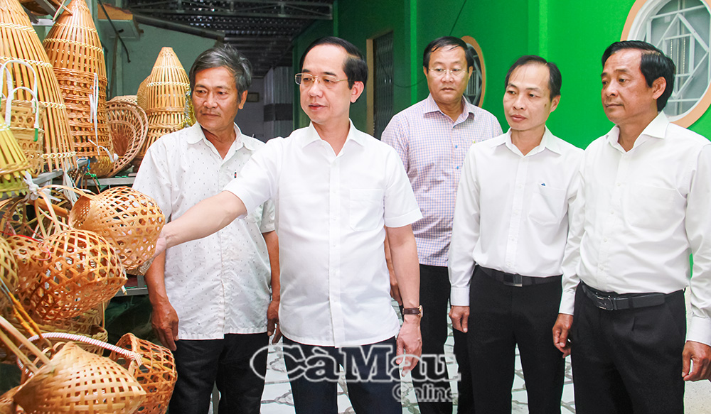 Trước buổi làm việc, đồng chí Hồ Thanh Thuỷ, Phó Bí thư Tỉnh uỷ, Chủ tịch Uỷ ban MTTQ Việt Nam tỉnh Cà Mau và đoàn công tác Thường trực Tỉnh uỷ đã đến khảo sát tại Hợp tác xã làng nghề truyền thống Đan Đát ở ấp Nhà Lầu 1, xã Ninh Thạnh Lợi.
