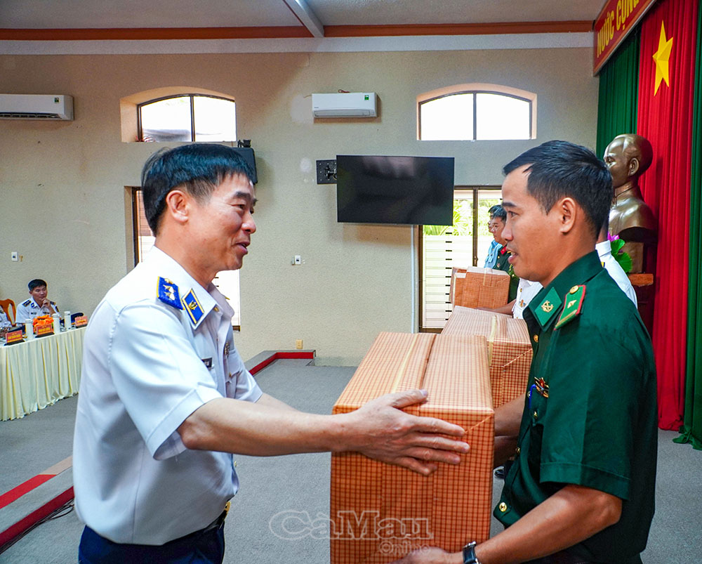 Trung tướng Bùi Quốc Oai tặng quà cho 6 đơn vị lực lượng vũ trang trên đảo.