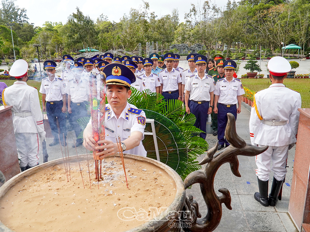 Trung tướng Bùi Quốc Oai, Chính uỷ Cảnh sát biển Việt Nam cùng đoàn công tác dâng hương Đài tưởng niệm các anh hùng liệt sĩ tại nghĩa trang Hàng Dương.
