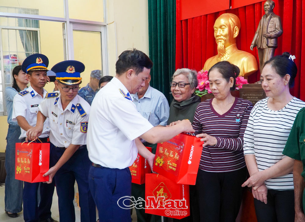 Trung tướng Bùi Quốc Oai, Chính uỷ Cảnh sát biển Việt Nam, tặng quà Tết Trung đoàn 152 (Quân khu 9), đóng tại đặc khu Thổ Châu.