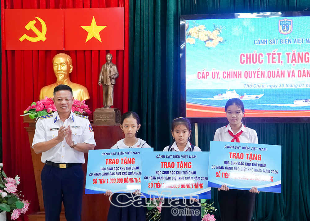 Bộ Tư lệnh Vùng Cảnh sát biển 4 trao học bổng cho học sinh đặc khu Thổ Châu.