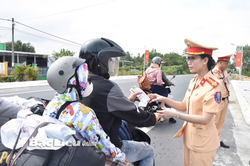 Dịp này, Cảnh sát giao thông tỉnh đã thông tin sơ lược về tình hình TTATGT trên địa bàn tỉnh năm 2024 và những ngày cận tết Nguyên đán 2025. Tuyên truyền về Nghị định 168 vừa có hiệu lực từ ngày 1/1/2025; cảnh báo các lỗi vi phạm phổ biến, các lỗi vi phạm là nguyên nhân trực tiếp dẫn đến tai nạn giao thông để người dân chủ động phòng tránh, giữ an toàn khi đi lại vui Xuân, đón Tết. Đồng thời, Cảnh sát giao thông cũng tặng quà Tết cho 30 hộ dân có hoàn cảnh khó khăn. Quà gồm gạo và một số nhu yếu phẩm cần thiết. Chi đoàn - Hội Phụ nữ Phòng Cảnh sát giao thông cũng đến trao quà tết cho cháu Lê Dương Bảo Long (SN 2021, ngụ Phường 5, TP. Bạc Liêu) - trẻ mồ côi do dịch COVID-19; thăm, tặng quà gia đình Thượng úy Trần Thanh Trang - cán bộ Công an xã Minh Diệu (huyện Hoà Bình) đang mắc bệnh hiểm nghèo phải điều trị dài hạn, hoàn cảnh gia đình khó khăn.