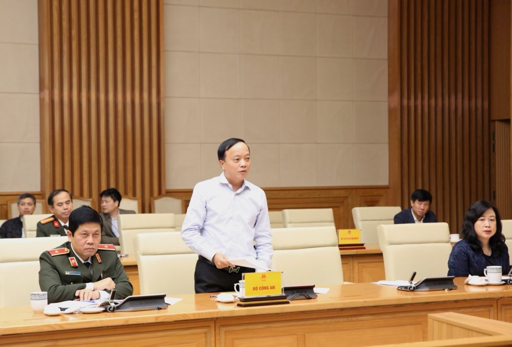 Thứ trưởng Bộ Công an Đặng Hồng Đức báo cáo tại cuộc họp - Ảnh: VGP/Nguyễn Hoàng