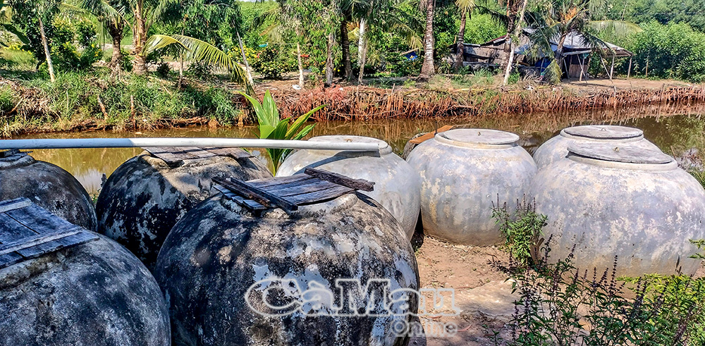 Tại xã Khánh Thuận (cũ), nay thuộc xã U Minh và Xã Nguyễn Phích, người dân sống phân tán theo diện tích rừng sản xuất, không có nguồn nước ngầm có chất lượng ngọt, nước mặt bị nhiễm phèn nặng nên bà con chủ yếu trữ nước mưa để sử dụng. (Ảnh: Tại gia đình ông Nguyễn Văn Ðồng, Ấp 19, Xã Nguyễn Phích, các lu trữ nước ngọt đã khô cạn).