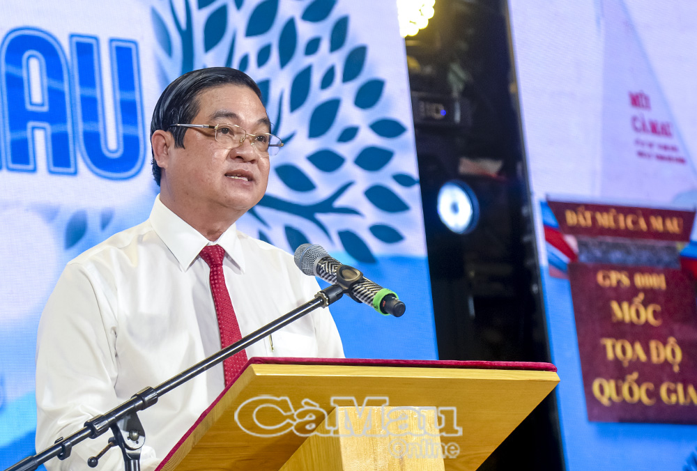 Phó Chủ tịch UBND tỉnh Cà Mau Huỳnh Chí Nguyện phát biểu tại lễ hội.