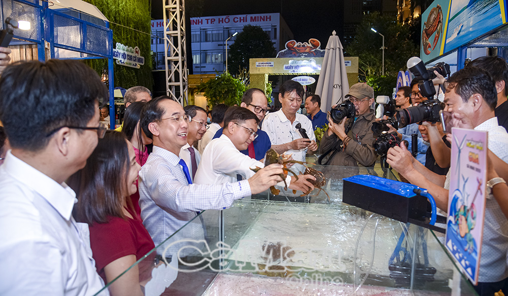 Lãnh đạo TP Hồ Chí Minh và tỉnh Cà Mau tham quan trưng bày cua Cà Mau.